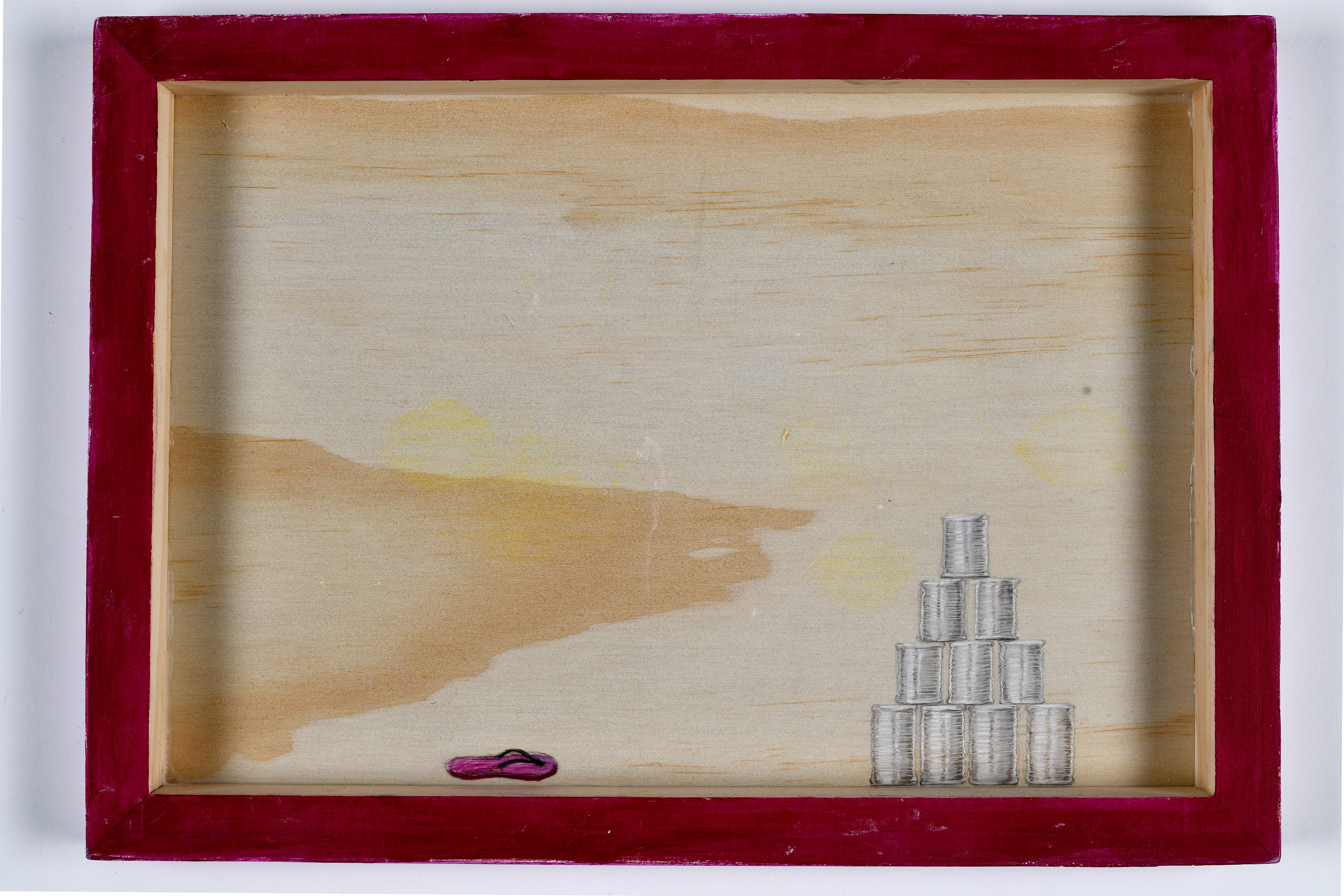 Displayed behind the paintings are from different games: Tumbang Preso and Overwatch.